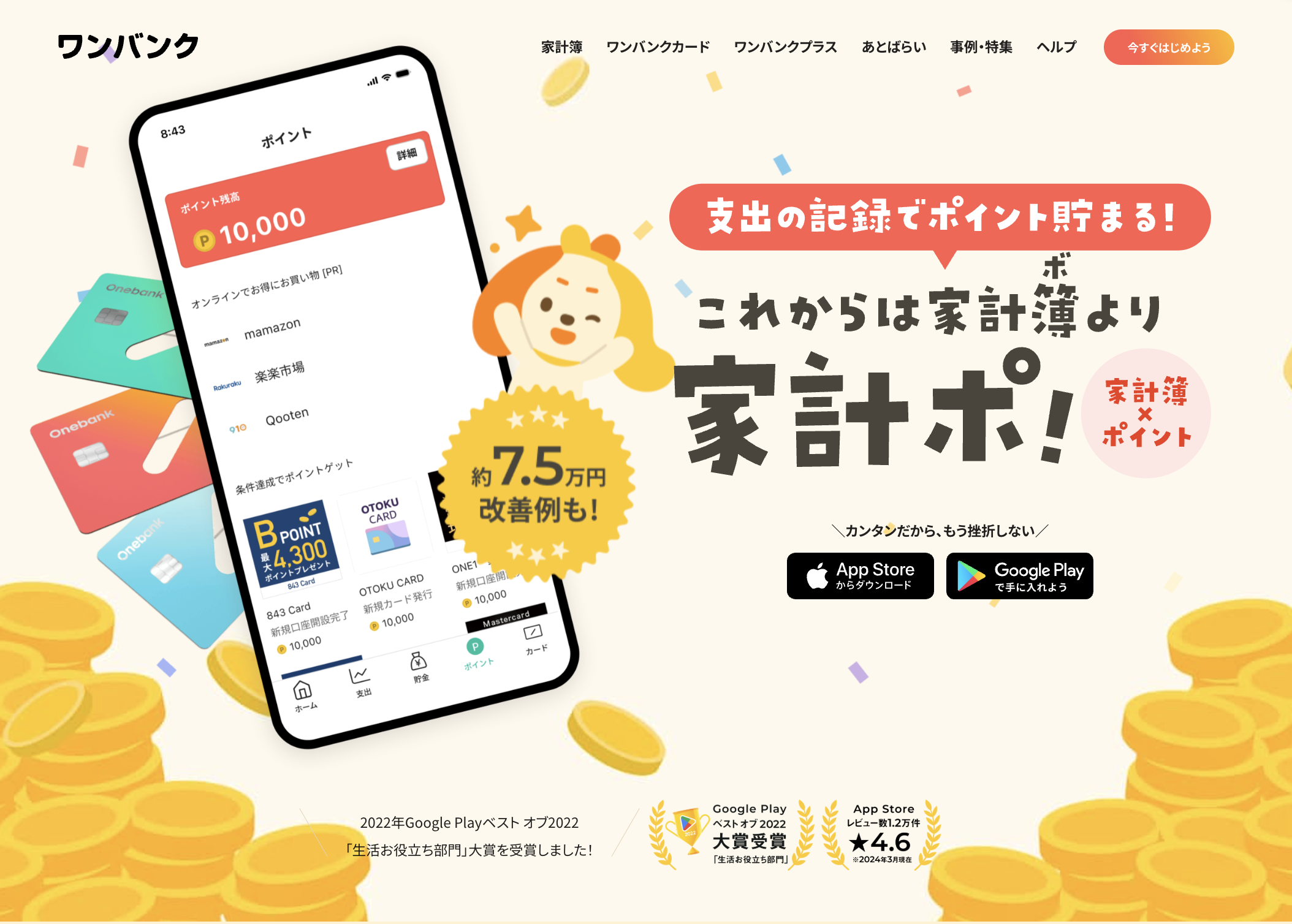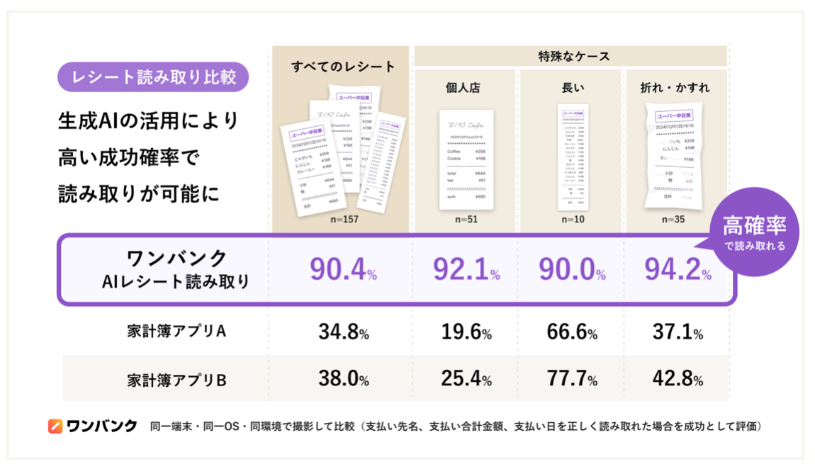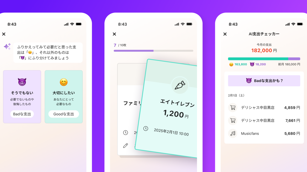2025.12.15#MEDIA【テレビ放送】AI家計簿ワンバンクがフジテレビ「ノンストップ!」で紹介されましたAI家計簿「ワンバンク」が、フジテレビの情報番組「ノンストップ!」の『専門家オススメ!進化系AIアプリ』特集で紹介されました!番組概要番組名: 『ノンストップ!』 https://www.fujitv.co.jp/nonstop/放送局: フジテレビ系列放送日: 2025年12月15日(月)紹介内容:『忙しい師走にピッタリ!専門家オススメAIアプリ』特集で、国内最大級のアプリ専門メディア「アプリブ」のオススメアプリのひとつとしてご紹介いただきました「ノンストップ!」番組公式サイトより番組を見て、はじめて「ワンバンク」を知ってくださった方向けに関連情報をご紹介します。📲ダウンロードはこちらワンバンクとは?みなさんは、こんなお金の悩みはありませんか?家計簿は続けるのが難しい自分が何にいくら使ってるかわからない家計管理は何をしたらいいのかわからないワンバンクは、そんな悩みを解決するAI家計簿アプリです。他の家計簿アプリとちがって、以下のような特徴があります。面倒な作業必要なし!家計簿が自動で完成AIが継続や支出改善などをサポート家計簿をつけるだけでポイントが貯まるあわせてVisaプリペイドカードである「ワンバンクカード」と一緒に使えば、必要な分だけ事前にチャージして支払うだけで、自動的に支出が記録されます。ワンバンクマイカード⋯個人の生活費やお小遣いなどの支出管理に最適ワンバンクペアカード⋯1つの口座に2枚のカードが発行でき、カップルや夫婦で残高を共有して使うことができますワンバンクジュニアカード⋯お子さまのお小遣い管理に!保護者さまのお申し込みにより発行可能。お子さまはスマホなしでもご利用可能。番組で紹介されたAI機能📱AIスクショ読み取りクレジットカードやQR決済の明細画面を スクショ → アップロード するだけで、 複数の支出をかんたんに一括登録できます。家計簿アプリに連携できないPayPayなどの支出記録にもぴったりです!https://onebank.jp/news/entry/feature-update-self-input🧾AIレシート読み取り現金で支払ったレシートも、AIを活用して90%以上の高確率で正確に読み取ります。https://onebank.jp/news/entry/feature-update-self-input🤖AI支出トークあなたが支出について気になることをAIに質問すると、実際の支出データをもとに疑問に答えてくれます。 例えば、 「隠れ無駄遣いはある?」 「今月支払ったサブスクは?」 「今年一番高かった支出は?」 など、家計簿の数字を見るだけでは分からないことも答えてくれます。https://onebank.jp/news/entry/feature-update-ai-spending-talk😊👿AI支出チェッカーゲーム感覚で直感的に支出をGOODかBADに分類すると、AIがユーザーのお金の価値観を学習してくれます🧑🎓https://onebank.jp/news/entry/feature-update-spending-checkerその他の特徴的な機能📈お金の使いすぎを防ぐプッシュ通知&グラフ機能予算を設定しなくても前月の自分と比較し、使いすぎかがパッと見て分かります。カテゴリごとに使いすぎの場合は月曜日にプッシュ通知でお知らせ。土日で使いすぎたら平日で無駄遣いを抑えるなど、週単位で支出を調整できます。https://onebank.jp/news/entry/feature-update-expenses-support💰️AI埋蔵金チェッカーあなたの支出を分析し、無駄遣いの可能性がある隠れた”埋蔵金”を計算できますhttps://onebank.jp/news/entry/feature-update-spending-mining他にも様々な機能を提供しています。ワンバンクで、”頑張らなくていいお金の管理”をはじめてみませんか?📲ダウンロードはこちらRecommend関連する最新情報2025.12.15#MEDIA【テレビ放送】AI家計簿ワンバンクがフジテレビ「ノンストップ!」で紹介されました2025.12.05#PRESS RELEASE#NEWS#MEDIA株式会社スマートバンクCEO 堀井翔太がForbes JAPAN「日本の起業家ランキング 2026」TOP 20に選ばれました2023.12.04#MEDIA日経クロストレンド「未来の市場をつくる100社【2024年版】」に、スマートバンクが選出されました2023.10.06#MEDIA「日経WOMAN」11月号にB/43ペアカードが掲載されました2022.12.01#MEDIA家計簿プリカ「B/43」がGoogle Play ベスト オブ 2022「生活お役立ち部門」大賞を受賞もっと見る