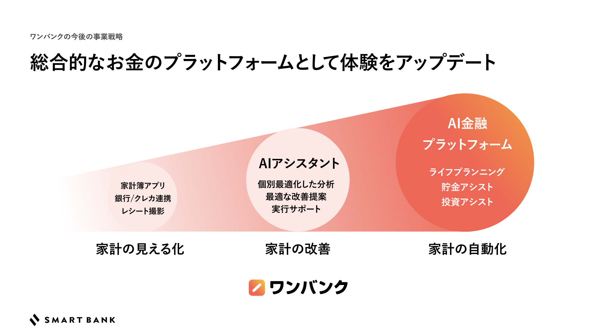 現在提供している「家計を見える化」する価値だけでなく、最終的には「家計を自動化」するAI金融プラットフォームを目指していきます。