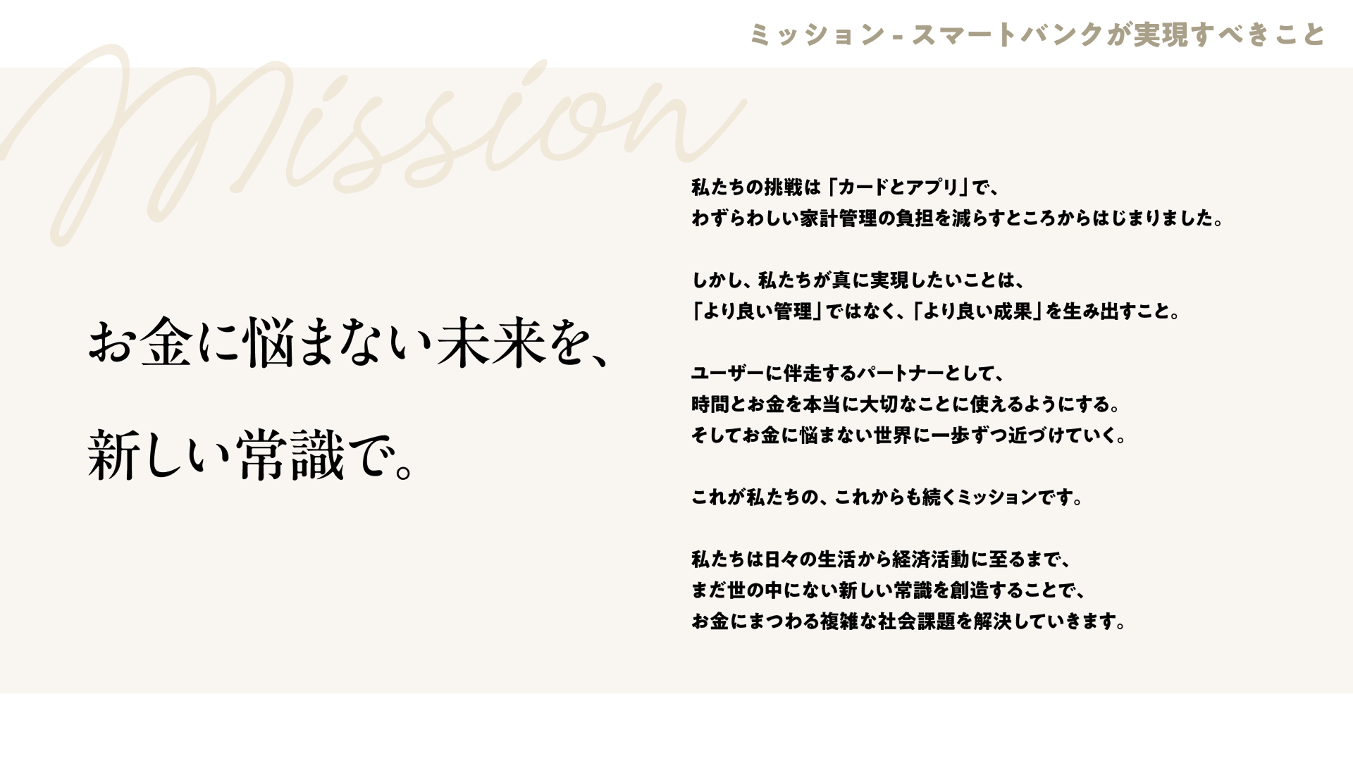 しかし、私たちはこの事業開発の難易度を大きなチャンスと捉えており、スマートバンクならではの瞬発力と独創的な発想を武器に、金融領域における複雑性を打破して新しい価値を創出できると考えています。